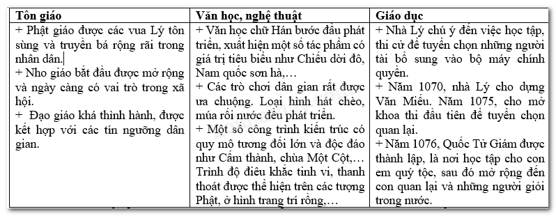 1. Giới thiệu những thành tựu tiêu biểu về văn hóa, giáo dục thời Lý.
