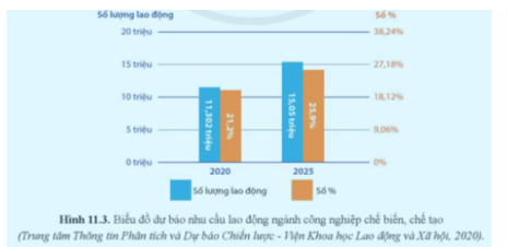 Quan sát hình 11.3 và nhận xét về nhu cầu lao động ngành công nghiệp chế biến, chế tạo.