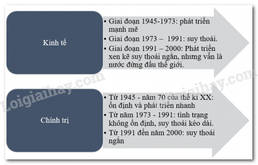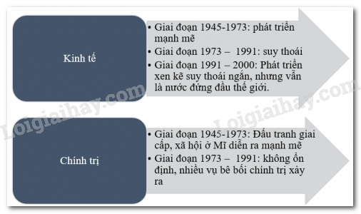 Hãy vẽ sơ đồ tư duy trình bày những nét chính về tình hình kinh tế, chính trị của nước Mỹ và các nước Tây Âu giai đoạn 1945 – 1991.