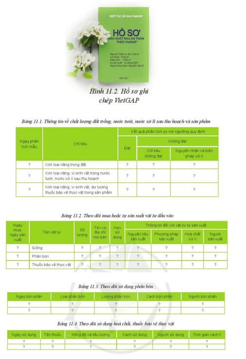 Lập các bảng ghi chép nhật kí sản xuất cho một loại cây trồng cụ thể ở địa phương em theo tiêu chuẩn VietGAP.