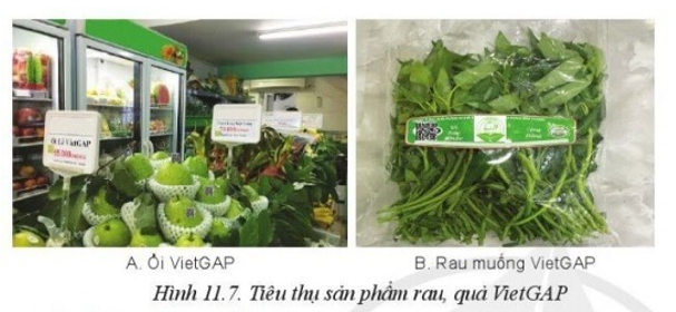 Em hãy quan sát hình 11.7 và chỉ ra những điểm khác biệt giữa sản phẩm VietGAP với sản phẩm thông thường bán trên thị trường.