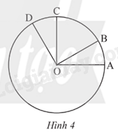 Quan sát Hình 4. Biết (widehat {DOA} = {120^o}), OA ( bot )OC, OB ( bot )OD.