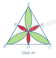Hình 44 mô tả một viên gạch trang trí hình tam giác đều. Xác định phép quay biến: