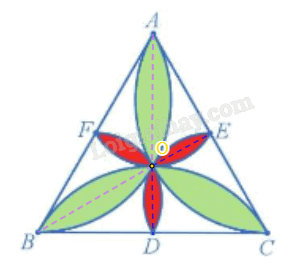 a) Đặt điểm O là tâm của các cánh hoa như hình vẽ. Do tam giác ABC là tam giác đều nên OA = OB và \(\widehat {AOB} = 120^\circ \). Do đó, ta có phép quay tâm O với góc quay 120° biến điểm O thành điểm O và điểm A thành điểm B. Như vậy, phép quay tâm O với góc quay 120° biến cánh hoa màu xanh đỉnh A thành cánh hoa màu xanh đỉnh B.