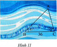 b) Dùng thước đo chiều dài cạnh MP của tam giác MNP. Tính khoảng cách giữa hai điểm A và C ở hai bờ sông trong Hình 11.