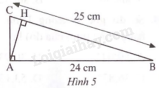 Tam giác ABC vuông tại A, có AB = 24 cm, BC = 25 cm, AH là đường cao (Hình 5).