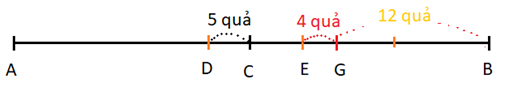 Vậy số quả lấy ra tương ứng đoạn DG, số quả còn lại là 12 quả tương ứng đoạn GB.