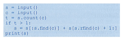 Xét bài toán: Cho xâu s và kí tự c. Nếu c xuất hiện nhiều hơn một lần trong s thì xoá khỏi s xâu con các kí tự liên tiếp nhau bắt đầu lần xuất hiện đầu tiên của c cho đến lần xuất hiện cuối cùng của kí tự này. Viết chương trình nhập xâu s và kí tự c vào từ bàn phím và thực hiện bài toán trên.