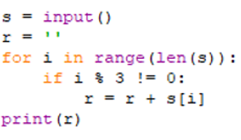 Xét bài toán: Cho xâu s. Tạo xâu mới từ s bằng cách xoá các kí tự tại những vị trí chia hết cho 3. Viết chương trình nhập xâu s từ bàn phím và thực hiện bài toán trên.
