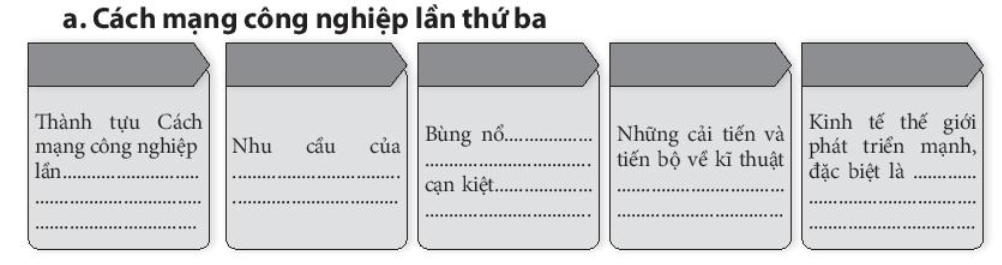 Câu 3. Hoàn thành bảng thống kê hai cuộc cách mạng công nghiệp thời hiện đại theo các tiêu chí dưới đây: