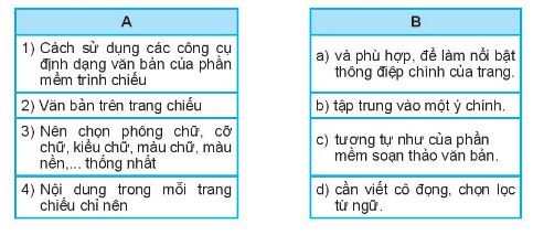 Ghép mỗi mục ở cột A với một mục ở cột B cho phù hợp.