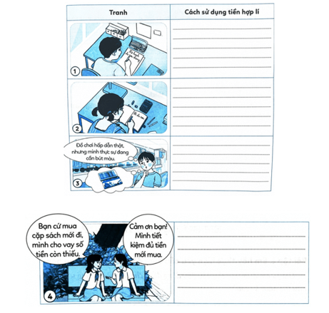 a. Em hãy nêu các cách sử dụng tiền hợp lí trong mỗi bức tranh.