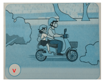 - Đội mũ bảo hiểm khi được bố mẹ đèo đến trường bằng xe máy.