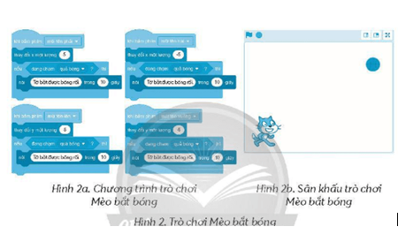 Hình 2 là chương trình Scratch trò chơi Mèo bắt bóng. Hãy điền vào chỗ trống để hoàn thành các câu sau: