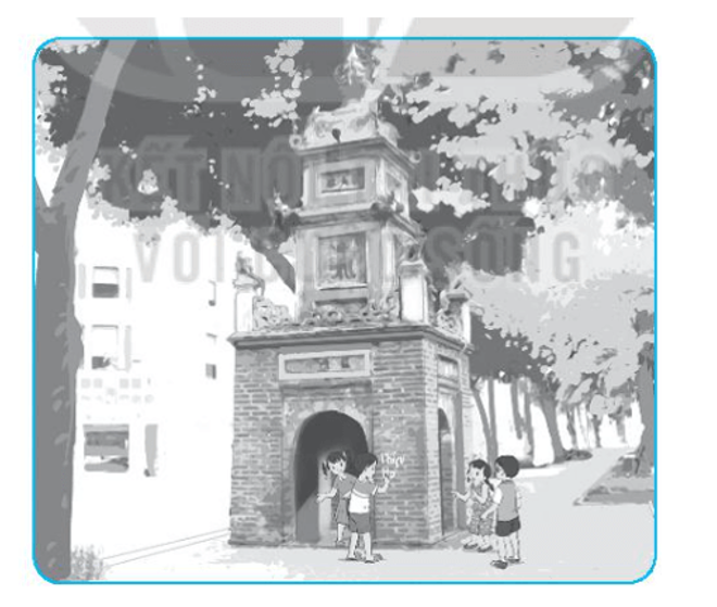 - Chúng mình vui chơi phía dưới có thể làm di tích bị hư hại. Các cậu hãy vui chơi ở ngoài vỉa hè đi.