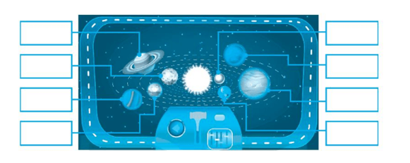 Hãy điền tên các hành tinh: Kim tinh, Thủy tinh, Hỏa tinh, Thổ tinh, Mộc tinh, Trái Đất, Thiên Vương tinh, Hải Vương tinh vào ô trống cho thích hợp.