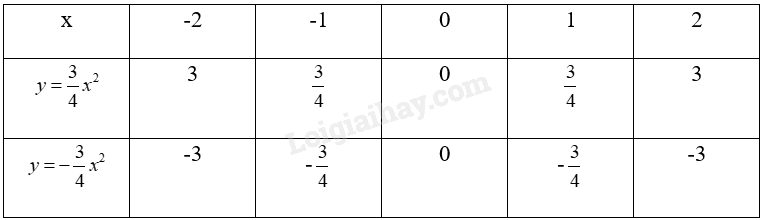 Cho hai hàm số \(y = \frac{3}{4}{x^2}\) và \(y = - \frac{3}{4}{x^2}\).