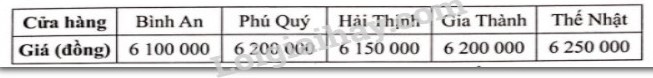 Bác Na cần mua một chiếc điện thoại thông minh. Giá chiếc điện thoại mà bác Na định mua ở năm cửa hàng như sau: