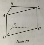 Cho hình lăng trụ đứng tam giác ABC.DEG có đáy là tam giác ABC vuông tại B với cạnh đáy \(AB = 2{\rm{ cm}}\) và cạnh bên \(AD = 5{\rm{ cm}}\) (Hình 20). Tính độ dài cạnh BC, biết thể tích của hình lăng trụ đó bằng 25 cm3.
