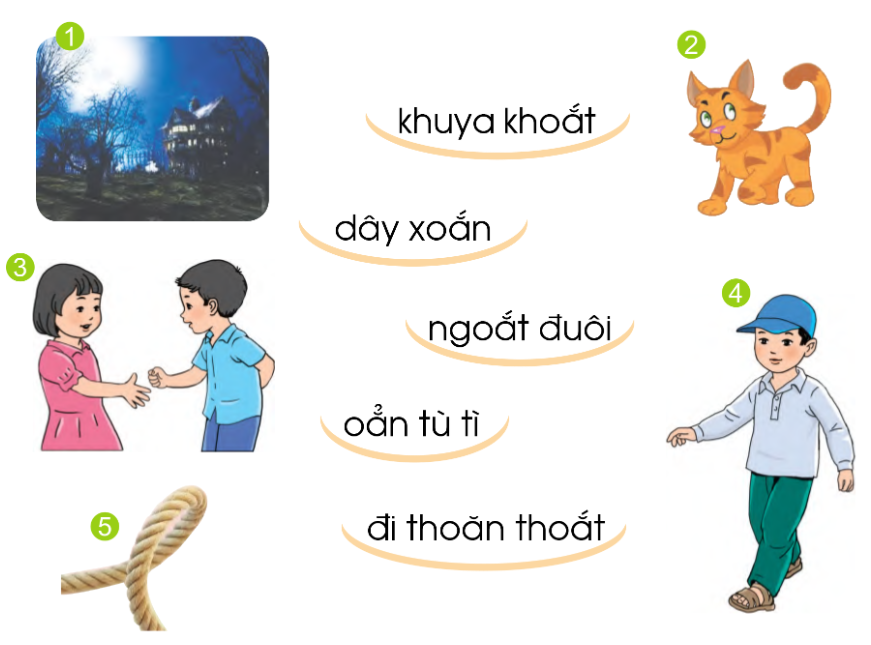 Em quan sát các hình ảnh và đọc các từ để hoàn thành bài tập.