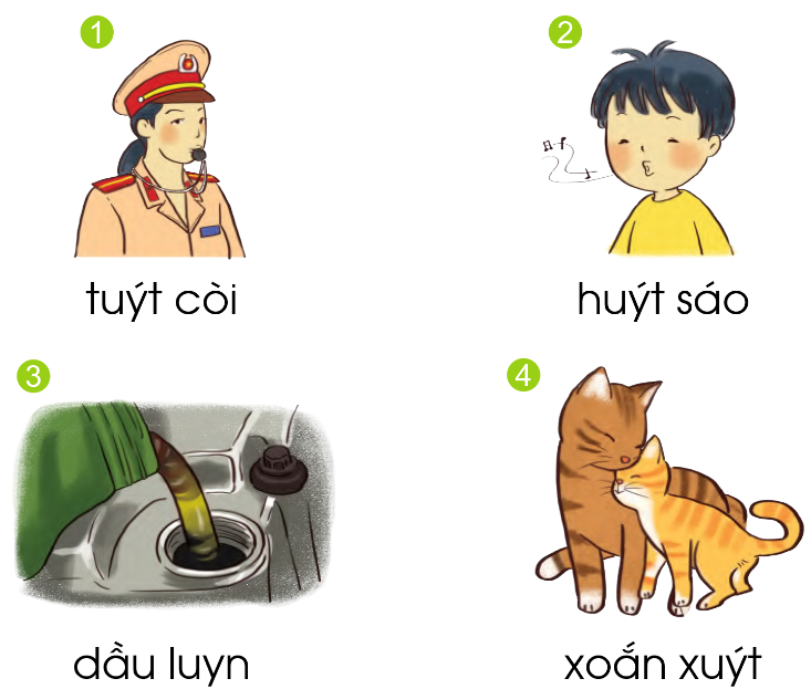 Tiếng có vần uyt là: tuýt, huýt, xuýt