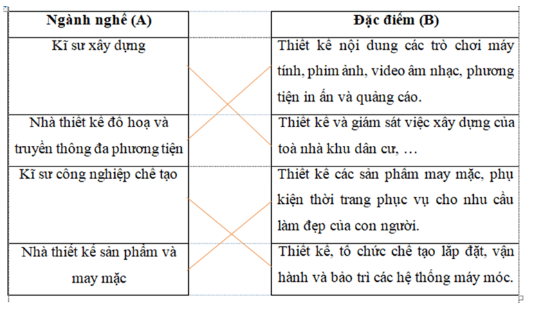 Hãy nối ngành nghề ở cột A với đặc điểm cơ bản của nghề ở cột B cho phù hợp.