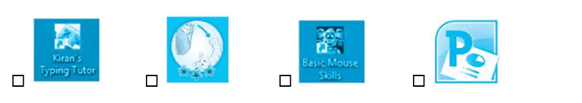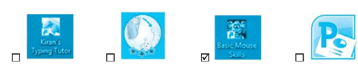 Đâu là biểu tượng của phần mềm luyện tập chuột Basic Mouse Skills. Đánh dấu ✔ vào ô trống trước đáp án đúng.