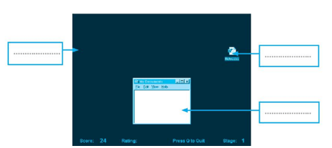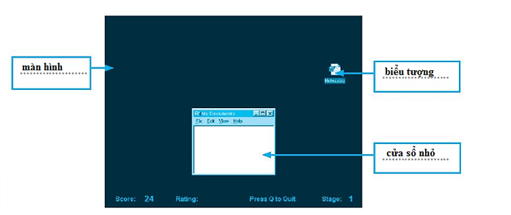 Hãy điền các cụm từ: màn hình, biểu tượng, cửa sổ nhỏ thích hợp vào chỗ chấm trong hình sau: