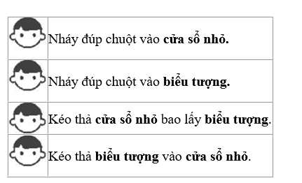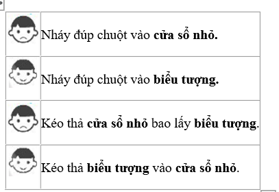 □ Luyện tập được các thao tác với chuột: di chuyển chuột, nháy chuột, kéo thả chuột, nháy nút phải chuột, nháy đúp chuột.