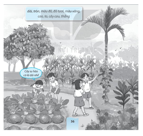 Cây trầu không mọc bám vào thân cây cau, Cây su hào có lá dài.