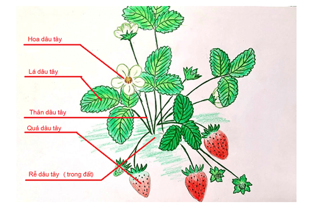Cây xoài thân rất to, có nhiều quả màu vàng, Cây ngô thân thẳng Cây hoa hồng có màu đỏ tươi.