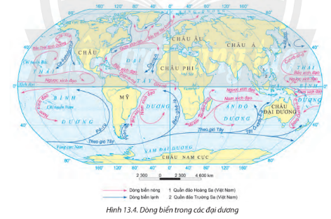 Dựa vào hình 13.4 trong SGK, em hãy liệt kê các dòng biển nóng và dòng biển lạnh