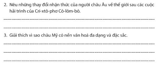 - Những thay đổi nhận thức của người châu Âu về thế giới sau các cuộc hải trình của Cri-xtô-phơ Cô-lôm-bô: đã khẳng định Trái Đất có dạng hình cầu, mở ra những nhận thức mới về thế giới.