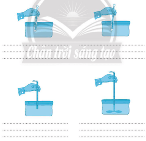 Hãy mô tả thao tác kĩ thuật trong quy trình đo nhiệt độ, độ trong của nước nuôi thủy sản thể hiện trong mỗi hình.