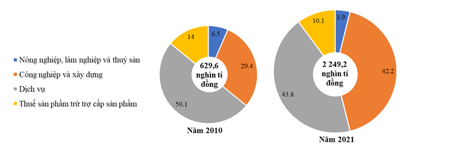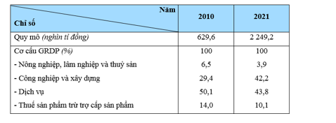 QUY MÔ VÀ CƠ CẤU GRDP CỦA VÙNG KINH TẾ TRỌNG ĐIỂM BẮC BỘ NĂM 2010 VÀ 2021