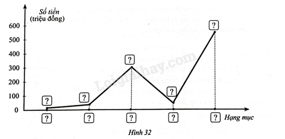 a) Hãy hoàn thiện biểu đồ ở Hình 32 để nhận được biểu đồ đoạn thẳng biểu diễn số tiền bác Long cần phải chuẩn bị cho các hạng mục theo dự tính như trên.