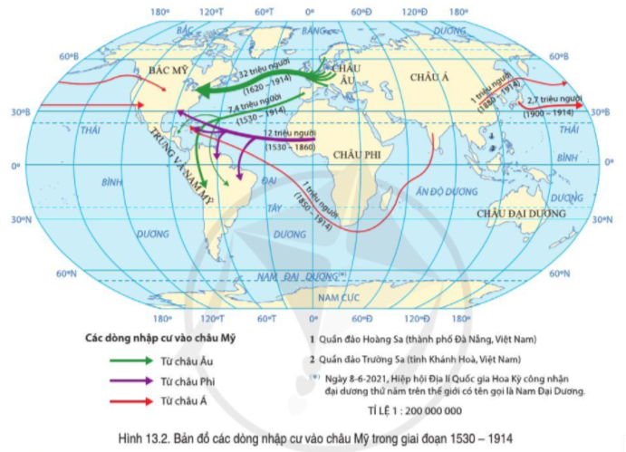 Đọc thông tin mục 2 (Hệ quả địa lí - lịch sử của việc phát kiến ra châu Mỹ) và quan sát hình 13.2.