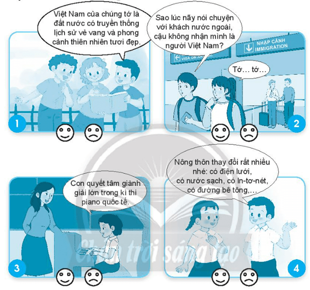 + Bức tranh số 1: Em đồng tình vì bạn nam đang giới thiệu Việt Nam với bạn bè thế giới về đất nước tươi đẹp của mình