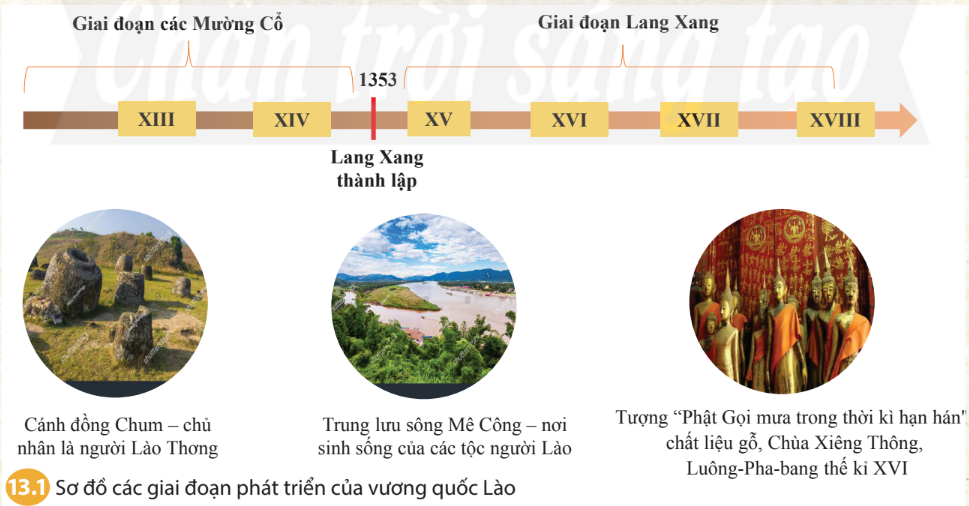 Dựa vào sơ đồ 13.1 và thông tin trong bài em hãy mô tả quá trình hình thành và phát triển của vương quốc Lào.