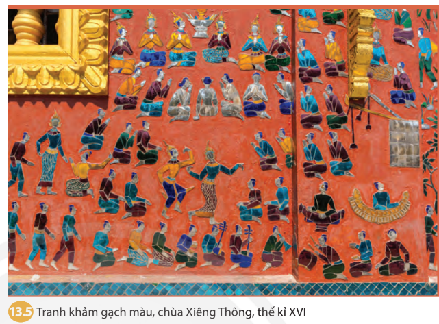 Quan sát bức tranh khảm 13.5, em hãy cho biết giá trị văn hóa truyền thống nào của lào đến nay vẫn được bảo tồn và phát triển