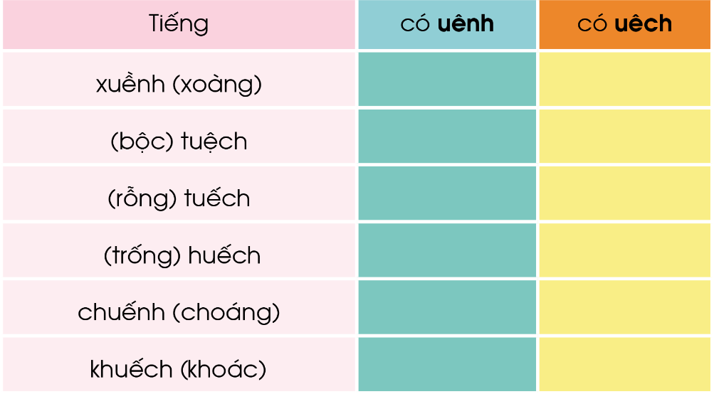 2. Tiếng nào có vần uênh? Tiếng nào có vần uêch?