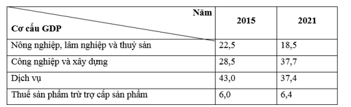 b) Nhận xét sự chuyển dịch cơ cấu GRDP (giá hiện hành) của Bắc Trung Bộ năm 2021 so với năm 2015.