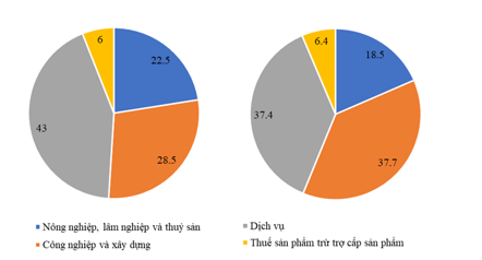 + Tỷ trọng của ngành dịch vụ có sự giảm nhẹ từ 43,0% xuống 37,4%, giảm 5,6%.