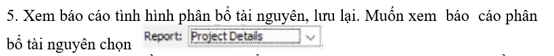 - Báo cáo chi tiết về các tài nguyên nhân lực được phân bổ cho dự án.