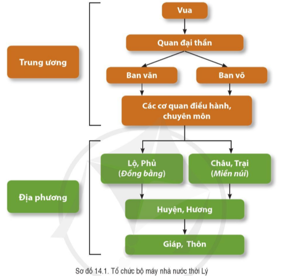 Đọc thông tin và quan sát sơ đồ 14.1, hãy mô tả những nét chính về tình hình chính trị và rút ra nhận xét về tổ chức bộ máy nhà nước dưới thời Lý.
