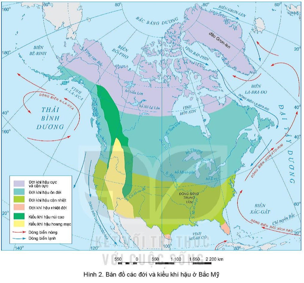 Dựa vào thông tin và hình trong mục 2, hãy trình bày sự phân hóa khí hậu của Bắc Mỹ.