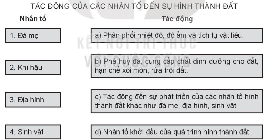 d. Con người là nhân tố quan trọng trong quá trình hình thành đất.
