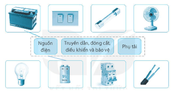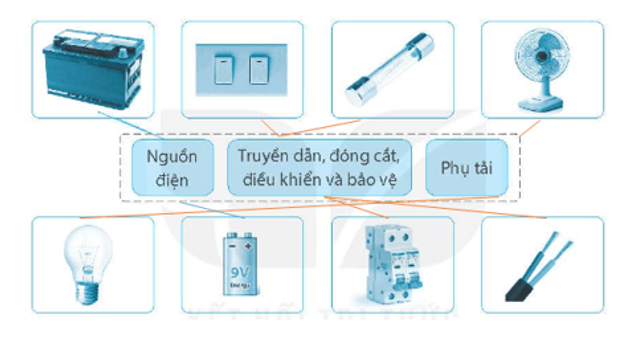Nối những hình dưới đây vào nhóm các phần tử tương ứng của mạch điện.