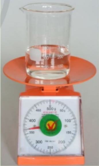 - Xác định khối lượng của lượng chất lỏng bằng cân, chú ý trừ đi khối lượng của cốc đong dùng để đựng nước.