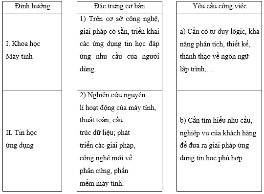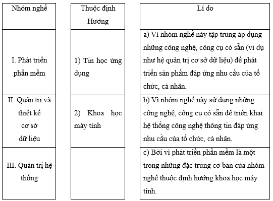 Ghép mỗi nhóm nghề với một định hướng và một lí do cho phù hợp.